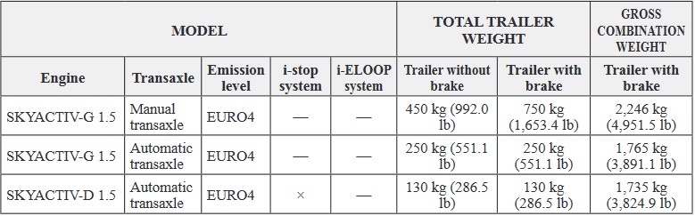 Always keep the trailer nose weight within the specified limits in the Trailer Towing-Load Table:
