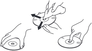 * Do not use discs with cellophane tape adhering, partially peeled off labels, or adhesive material exuding from the edges of the CD label.