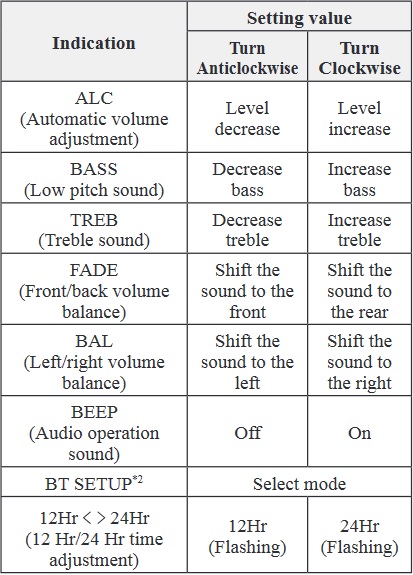 2. Turn the audio control dial to adjust the selected functions as follows: