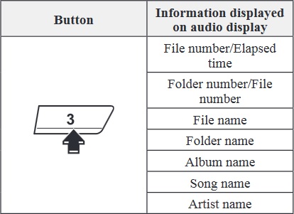 The information displayed on the audio display changes as follows