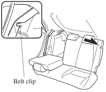 Make sure that the seat belt is neither stuck in the rear seat nor twisted, then remove the seat belt from the belt clip.