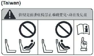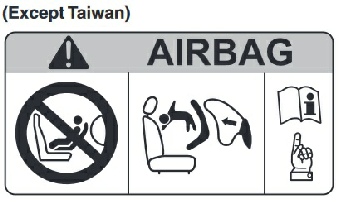 NEVER use a rearward facing child restraint on a seat protected by an ACTIVE AIRBAG in front of it, DEATH or SERIOUS INJURY to the CHILD can occur. Vehicles with a front passenger air bag have a warning label attached as shown below. The warning label reminds you not to put a rear-facing child-restraint system on the front passenger seat at any time.