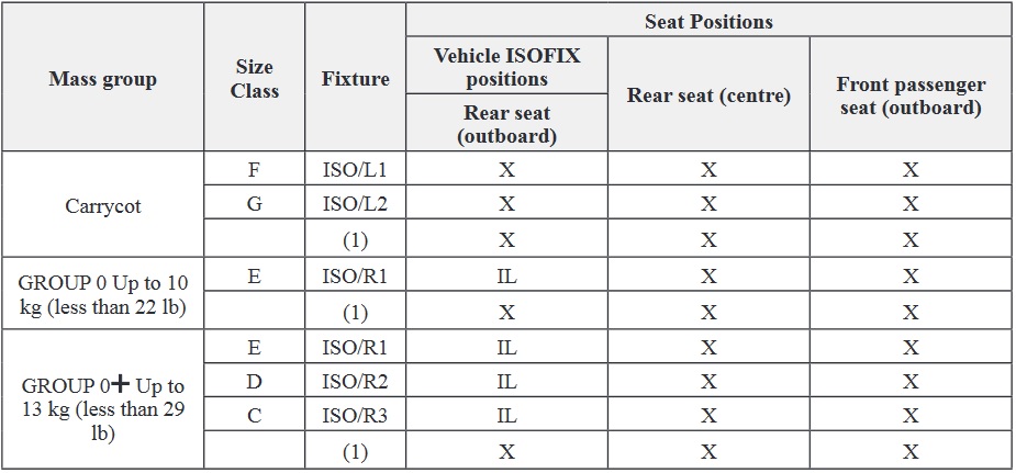 Provided information in the table shows your child-restraint system suitability for various seating position. For installation suitability of other manufacturer child-restraint system, carefully consult the manufacturer's instructions which accompany the child-restraint system.
