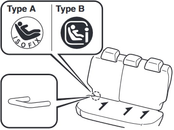 The markings above the ISOFIX anchors indicate the locations of the ISOFIX anchors for the attachment of a child-restraint system.