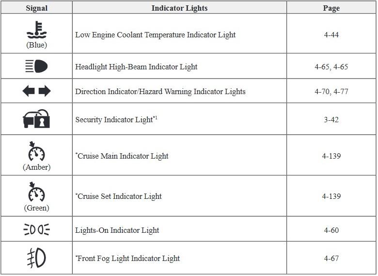 *1 The light turns on when the ignition is switched on for an operation check, and turns off a few seconds later or when