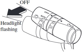 When the lever is pulled with the ignition switched to ACC or OFF, the low beam headlights turn on.