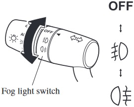 The rear fog light can be used when the ignition is switched ON. The rear fog light helps