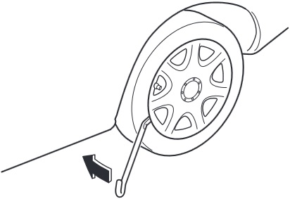 Force the end of the jack lever firmly between wheel and cover, or removal will be difficult.