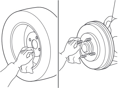 the wheel and hub, including the hub bolts, with a cloth.