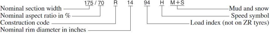 Choose the proper tyres for your vehicle using the following tyre mark information.